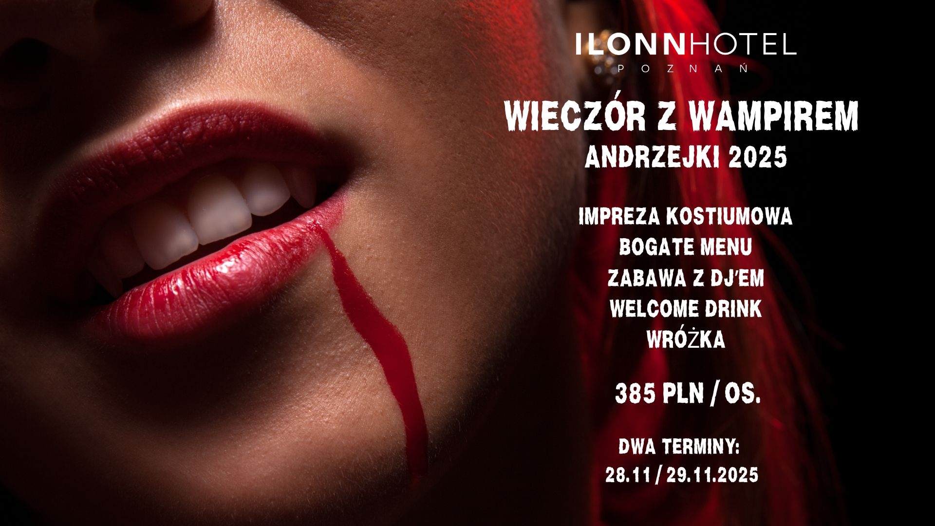 Jak zawsze możecie Państwo liczyć na świetną zabawę, zachęcamy do przyjścia na imprezę w kostiumach! „Wieczór z wampirem”